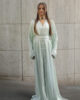Kaouther, a whimsical sage green dress that celebrates freshness and vitality, earthy yet exquisitely polished. She flows with effortless charm and the gentle magic of nature in bloom.