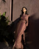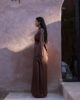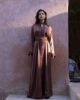 Wafaa, a rich mahogony brown with hues that carries the essence of earth and nature. Its depth of colour adding dimension and warmth to every movement. The aura of timeless beauty. Wafaa doesn’t just fit the event, it elevates it.